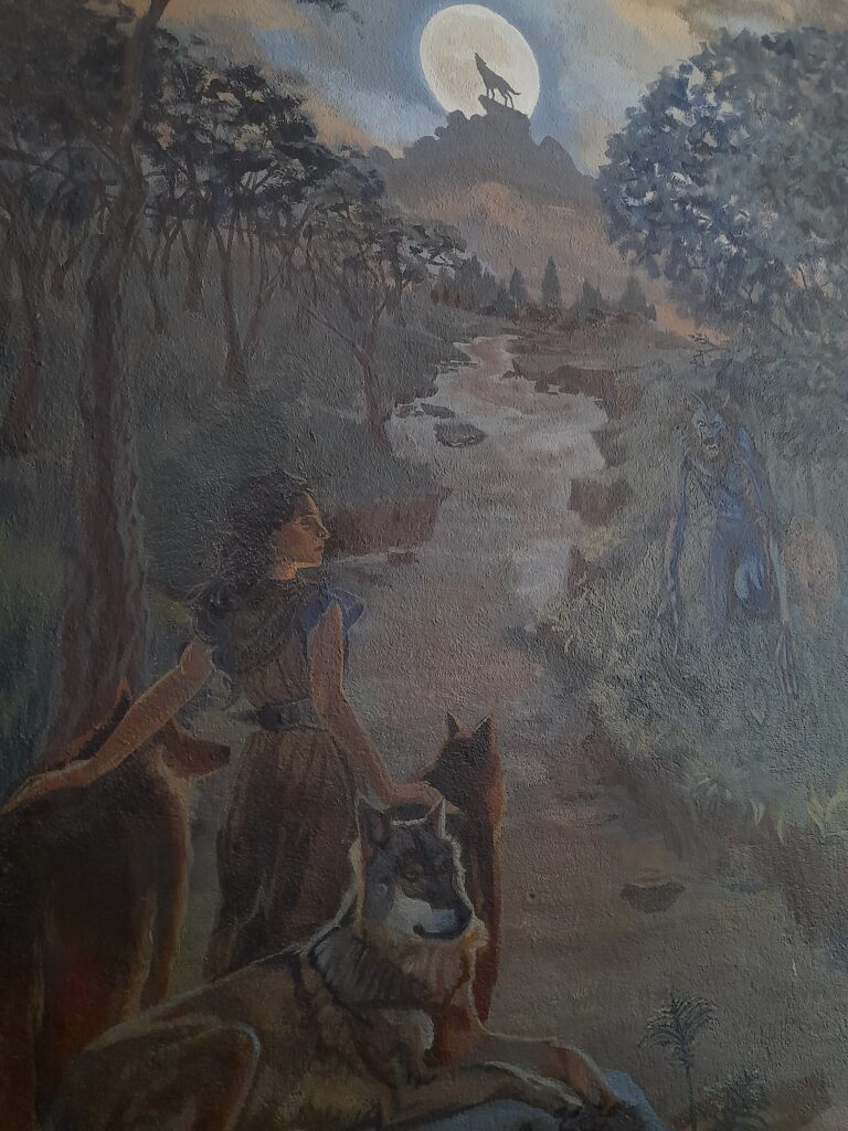 We visited the Iberian Wolf School in Vimioso, where we were able to observe this painted wall that symbolizes the strong connection between the Iberian wolf, the local community, and the surrounding nature.